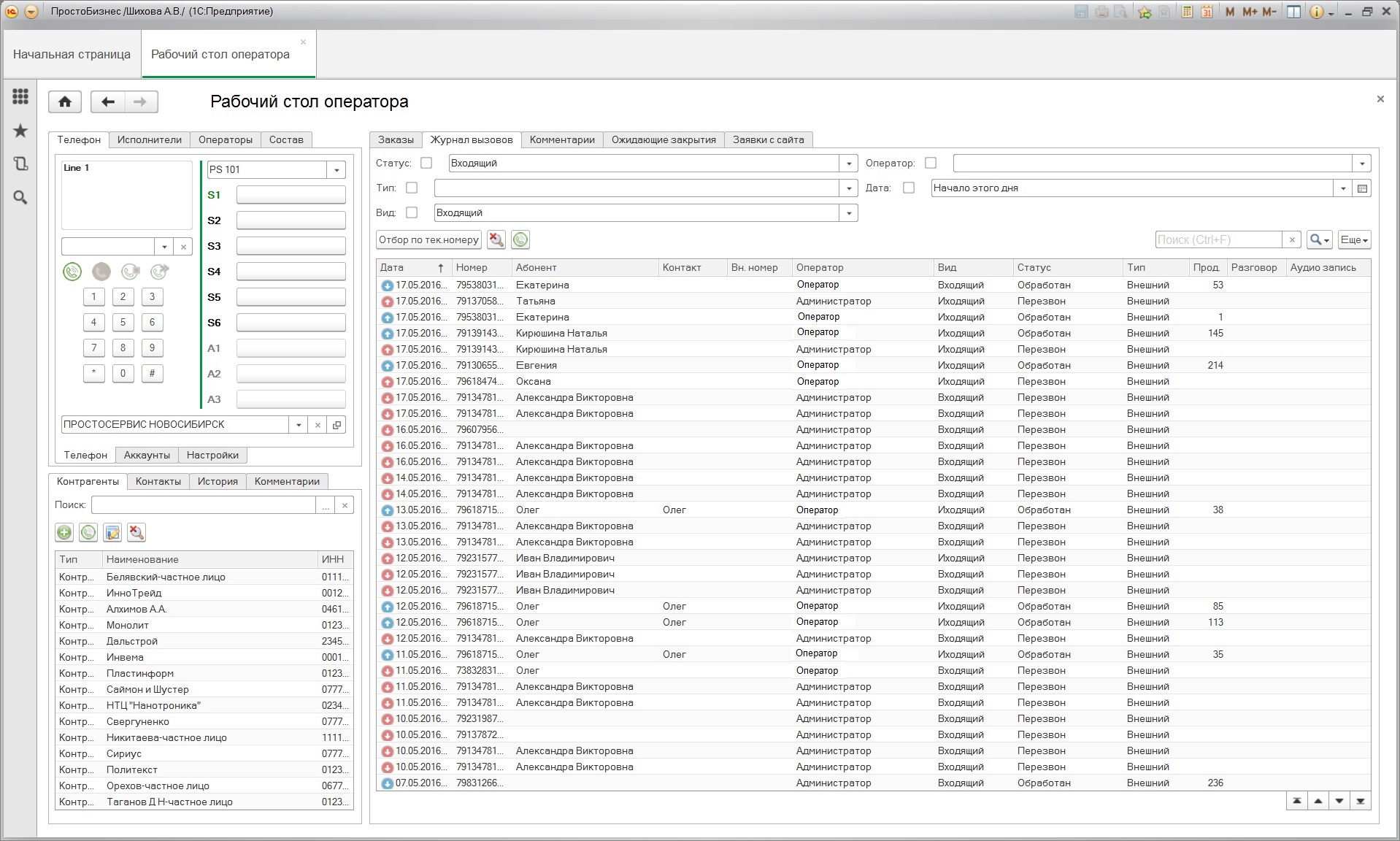 В программе настраиваются всевозможные журналы звонков (принятые, пропущенные, отработанные и т. д.) с хранением истории.