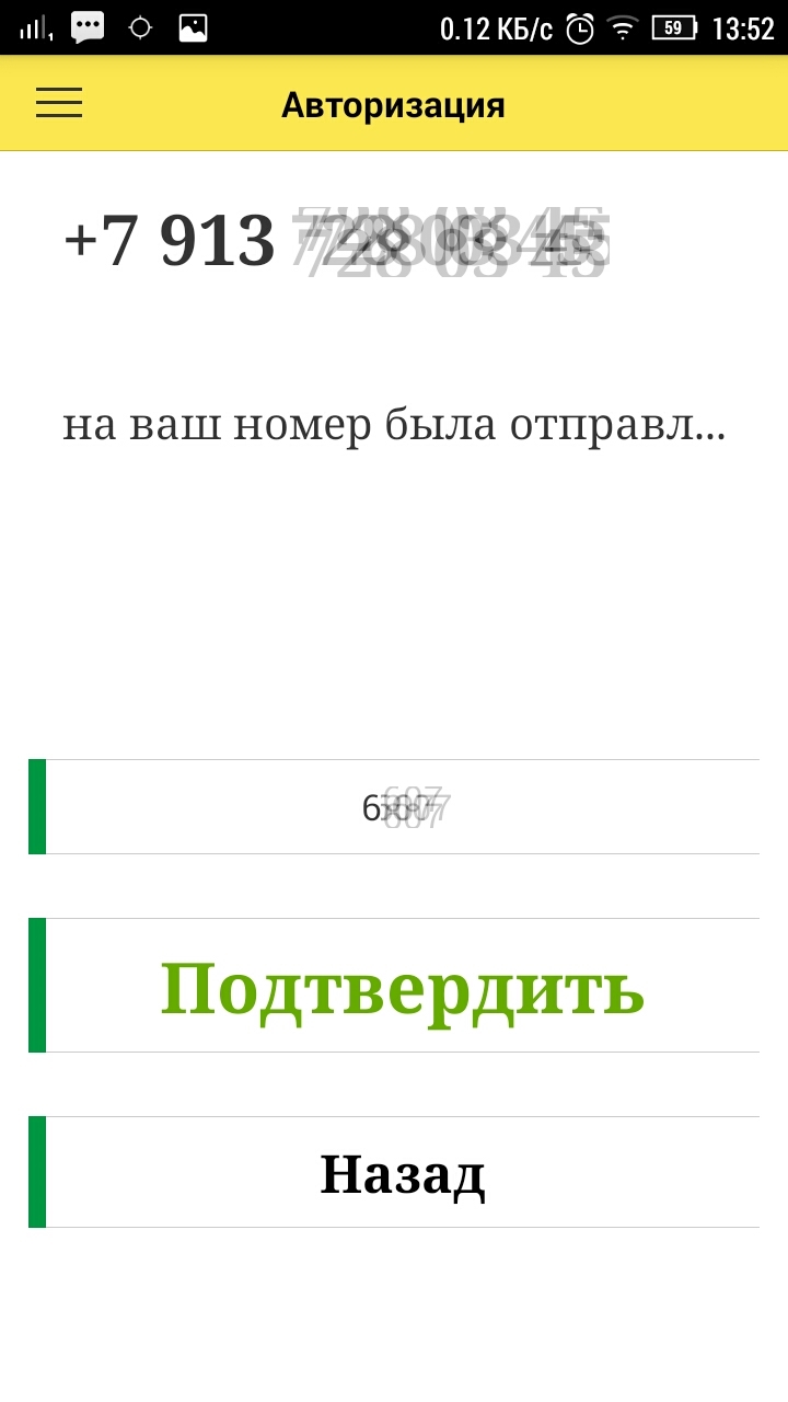 На указанный Вами номер придет СМС сообщение с кодом авторизации. Введите код авторизации и нажмите кнопку «Подтвердить».