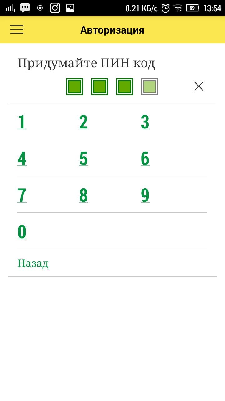 Придумайте и введите ПИН код для дальнейшего входа в базу. ПИН код должен состоять из 4-х цифр.