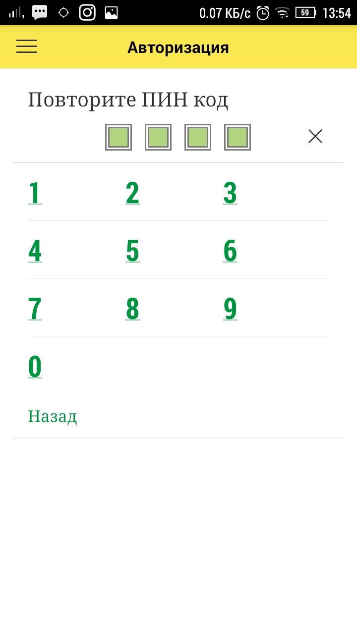 Повторите ввод придуманного ПИН кода для подтверждения изменений.