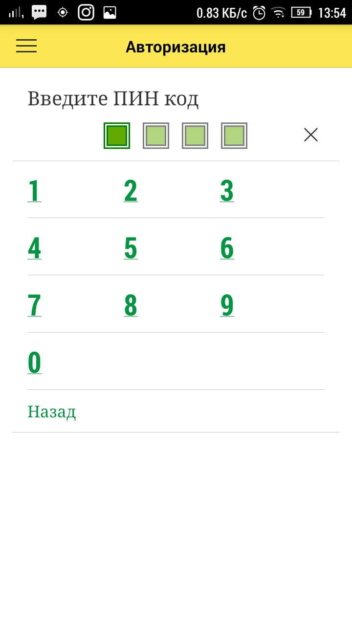 Введите ПИН код для входа в базу.