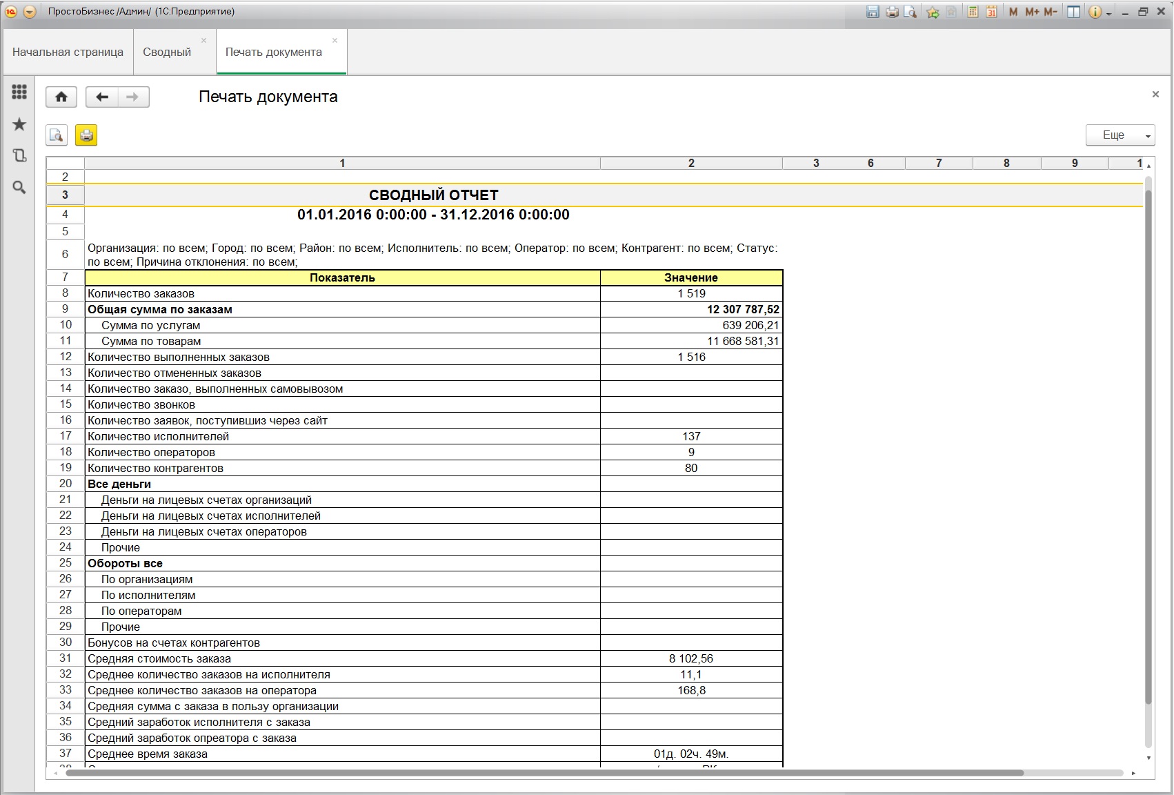 Итоговый отчет по финансовым показателям всех хозяйственных операций за любой период