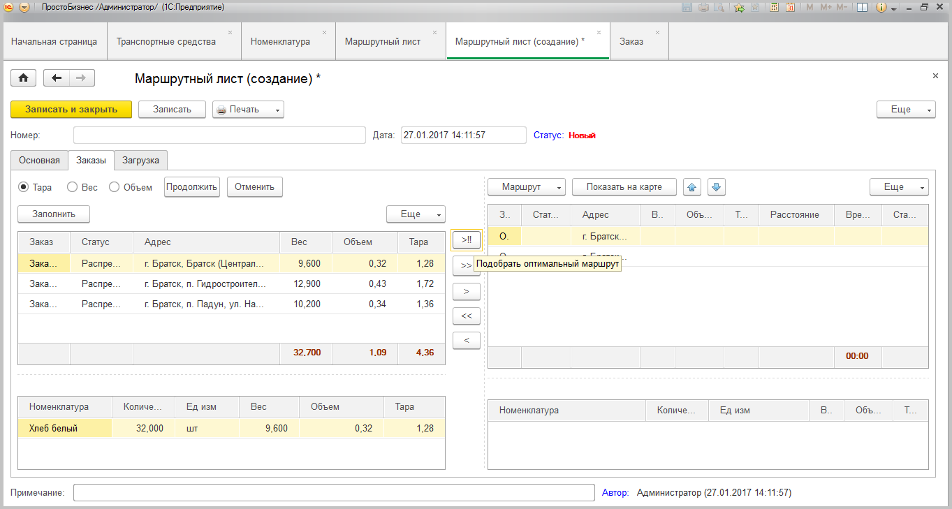 Система оптимальной загрузки транспорта и построение маршрутов